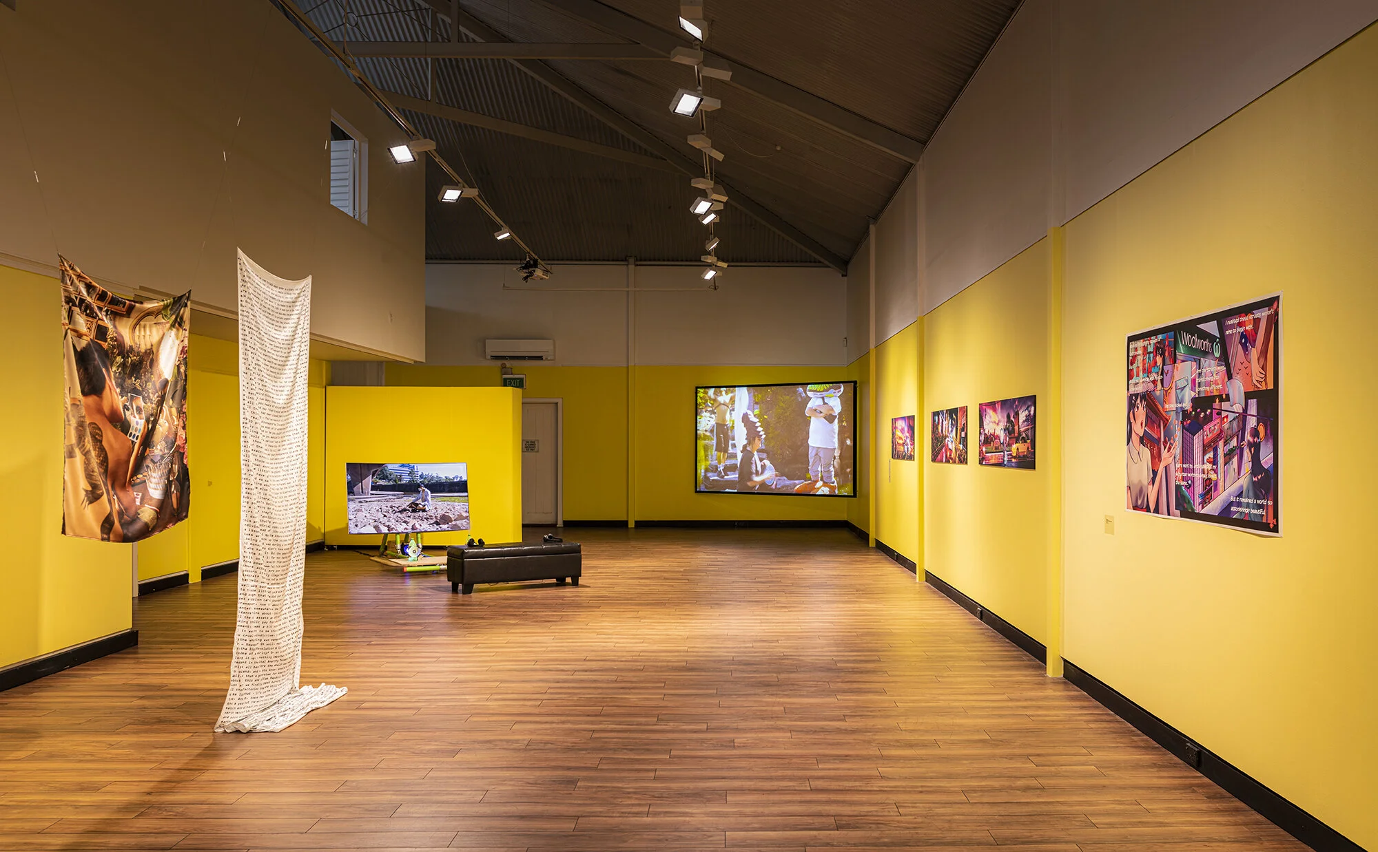 Here: After presents radical and fantastical visions for our future. Acting as fortunetellers, soothsayers, dreamers—artists from Fairfield and beyond come together to manifest alternative realities that are intricately personal and connected to place. Speculating on the here and the after, the exhibition imagines expansive, grounded and saturated tomorrows.